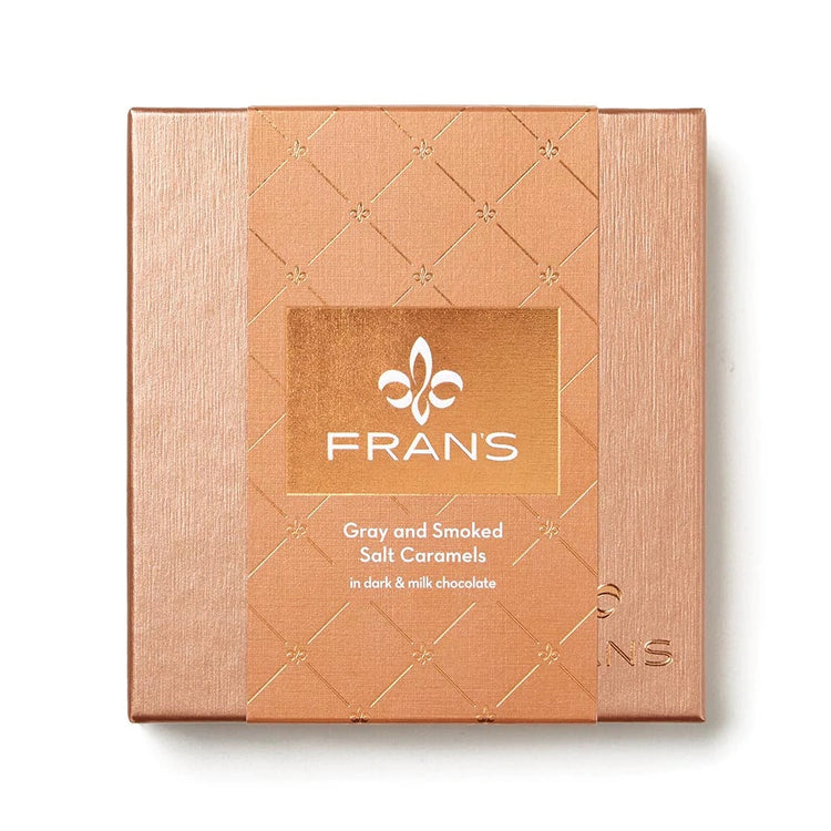 Award-winning Gray and Smoked Salt Caramels by Fran’s Chocolates in Seattle. These decadent treats feature a harmonious blend of complex flavors–rich smooth chocolate, soft, buttery caramel and the unexpected boldness of the gray and smoked sea salts.
