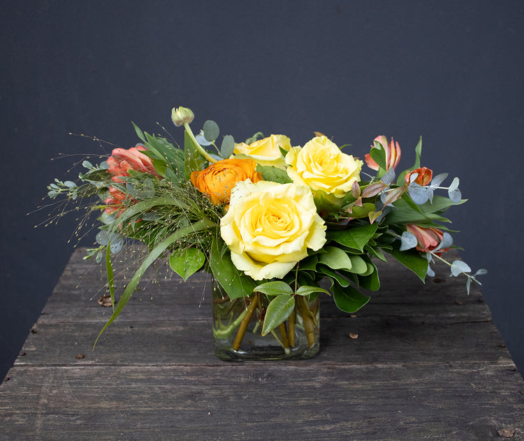 Each design is made to order. Our designers may need to make substitutions based upon what is fresh, seasonal, and available while maintaining the colors and style of the arrangement chosen.